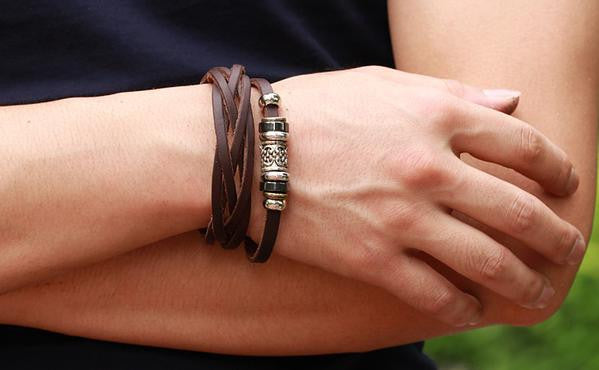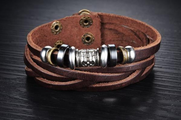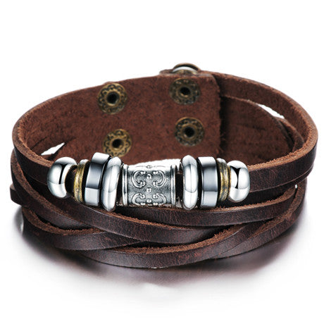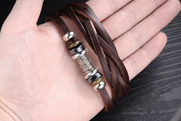 Genuine Leather Heavy Charm Men's Stainless Steel Bracelet