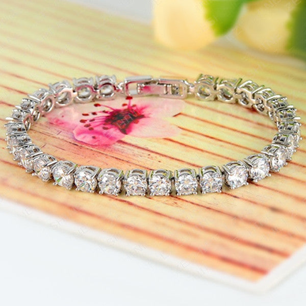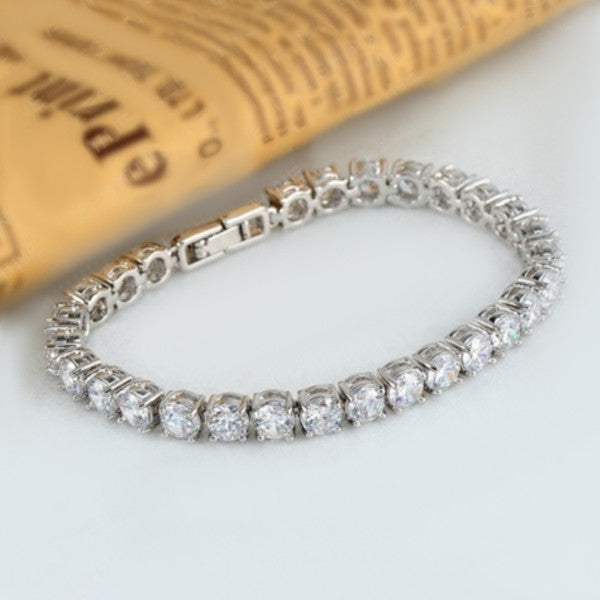 For everyday occasions adorn this simply elegant Diamond Accent Tennis Bracelet for a touch of sophistication and sparkle. This classy bracelet adds a tasteful amount of shine and glimmer to your ensemble. Fitting just right and suspending just a tad from your wrist, this bracelet is sure to make you look and feel rich in style!