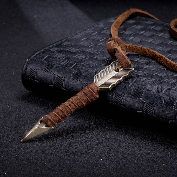 Mens Necklace in Stainless Steel Arrow wrapped in Vegan Leather