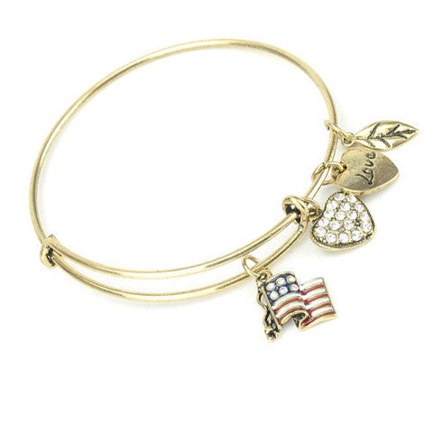 Wear the Flag Love Charm pendant with pride! A great bracelet to wear throughout the entire year. Detailed with 2 dangling motif charms and two heart pendants. Engraved with the word "Love" on it. Designed with an adjustable diameter to comfortably fit every wrist size.