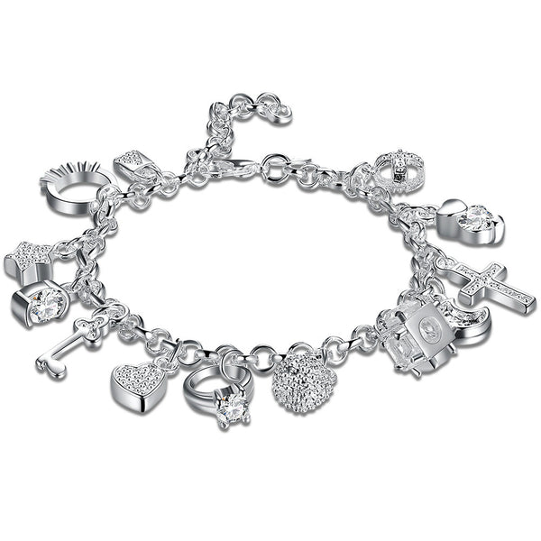 Swarovski Crystal Charms Bracelet in 18K White Gold Plated